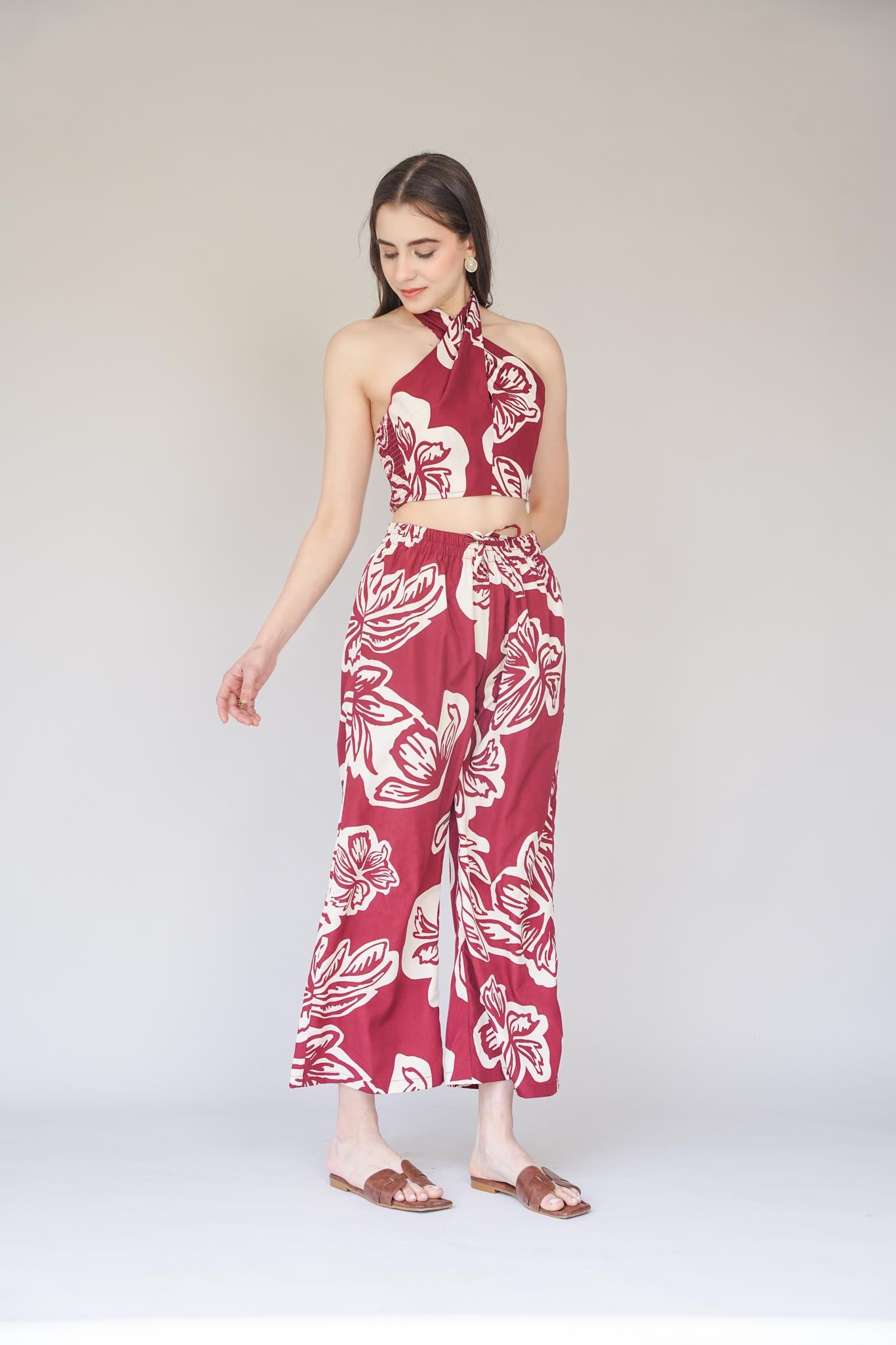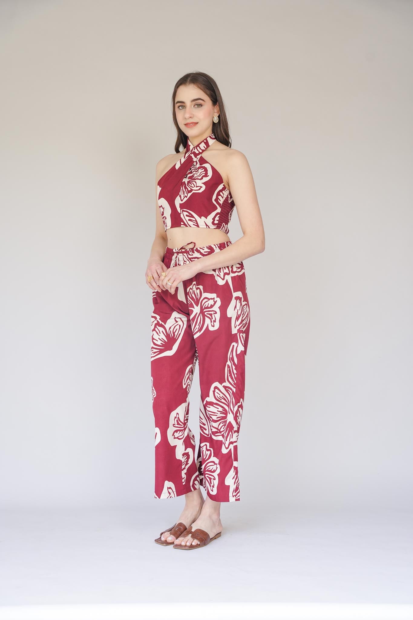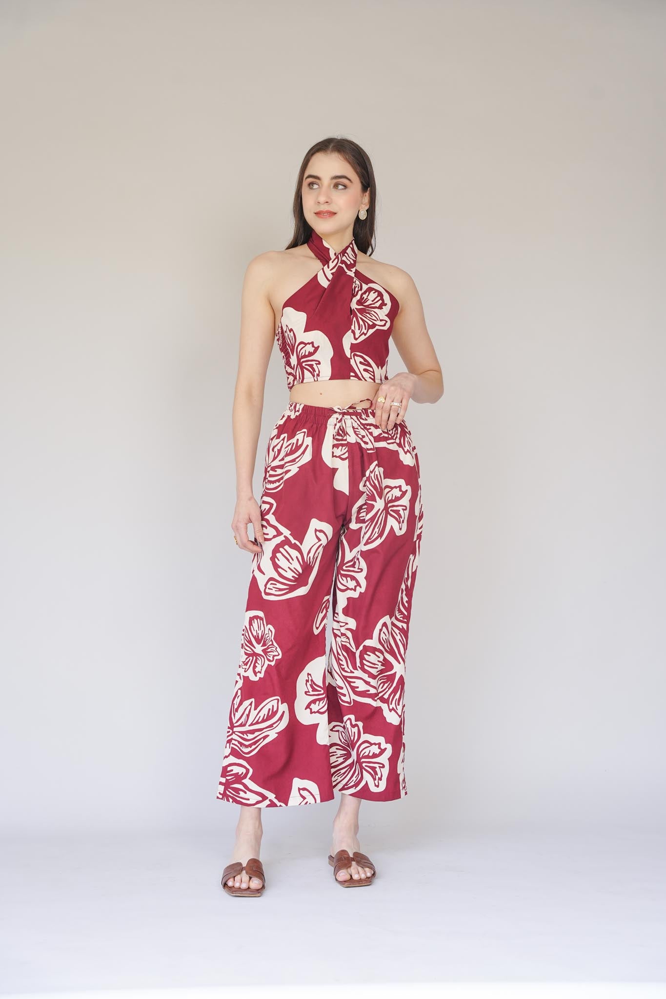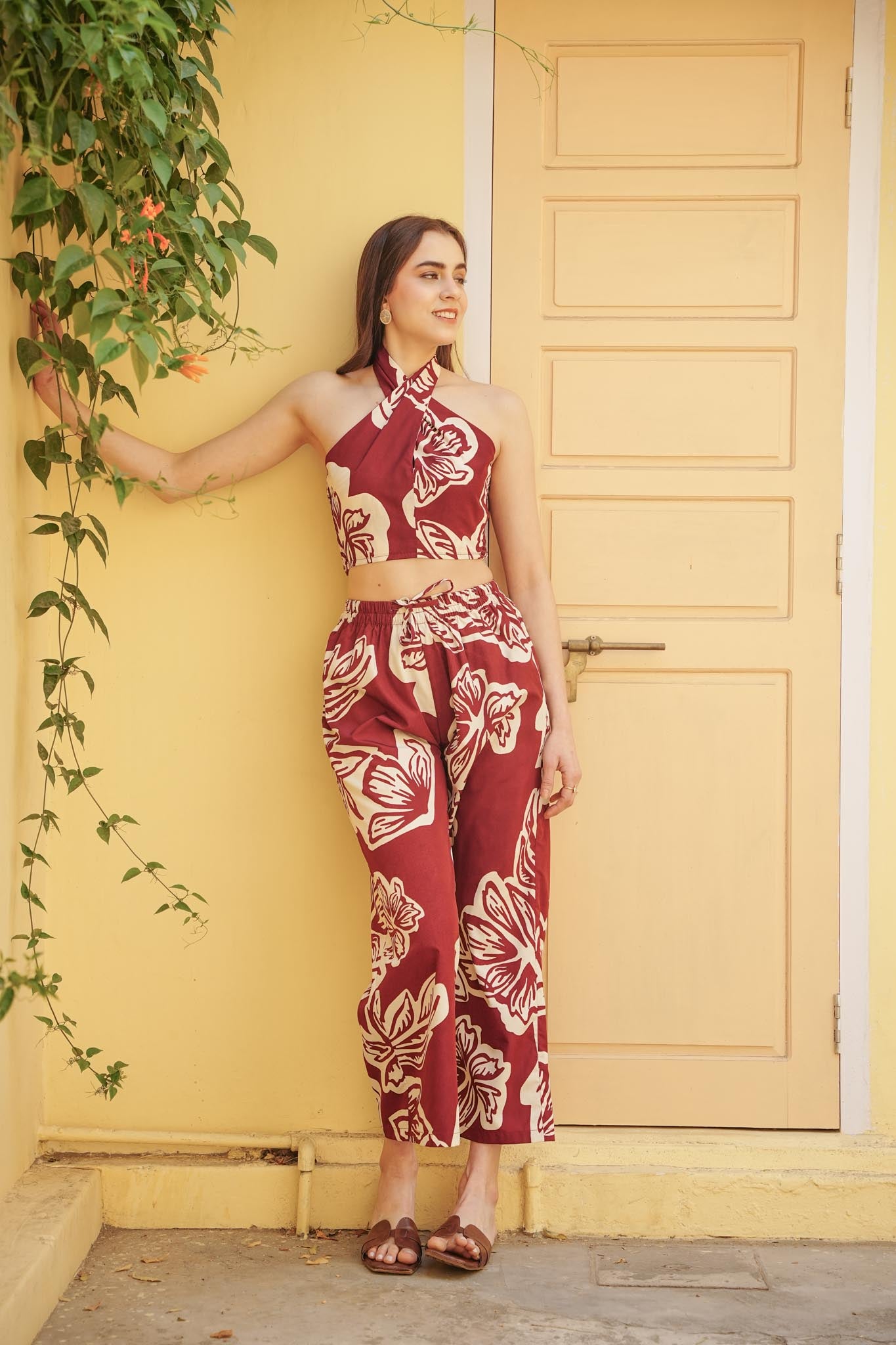 Tropical treasures! Our lola co-ord is just the right fit for your exotic holiday season. Dress it up with a pair of pearl danglers, a messy bun and golden espadrilles and you're all set to turn up the heat.