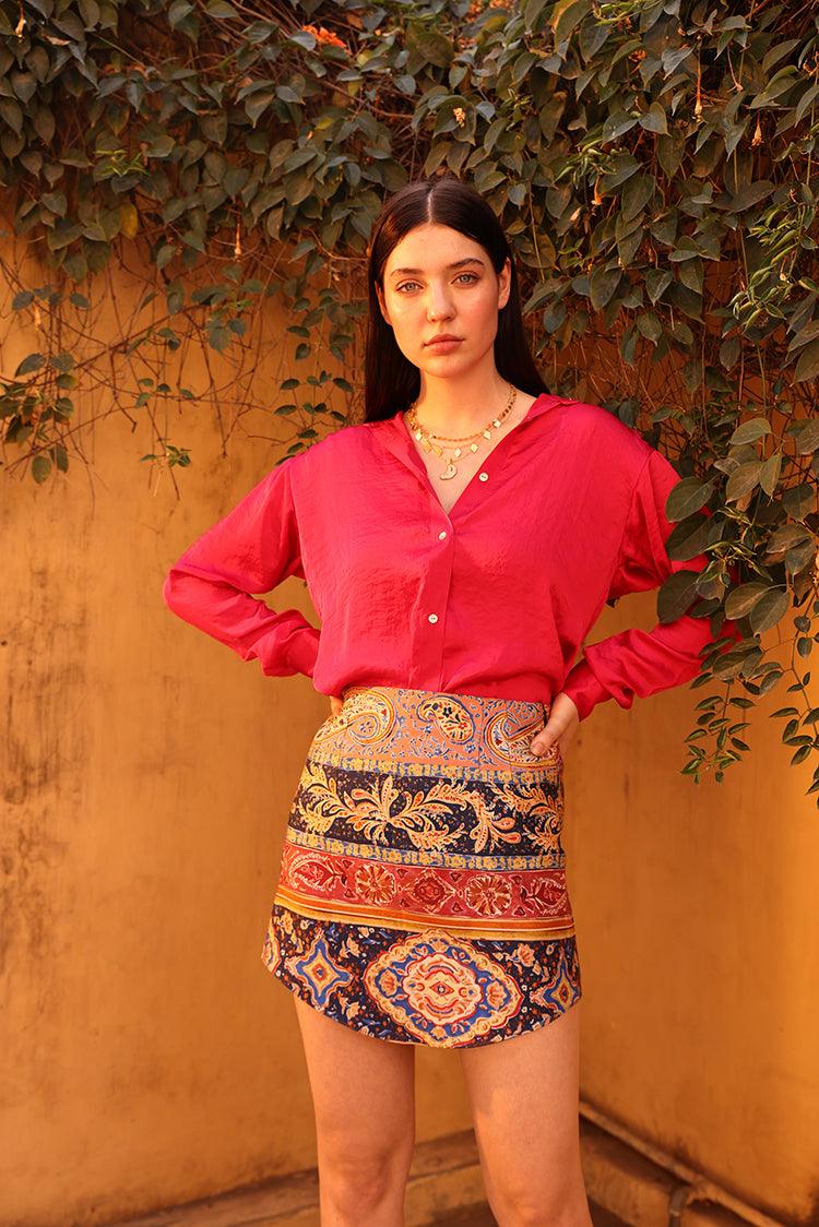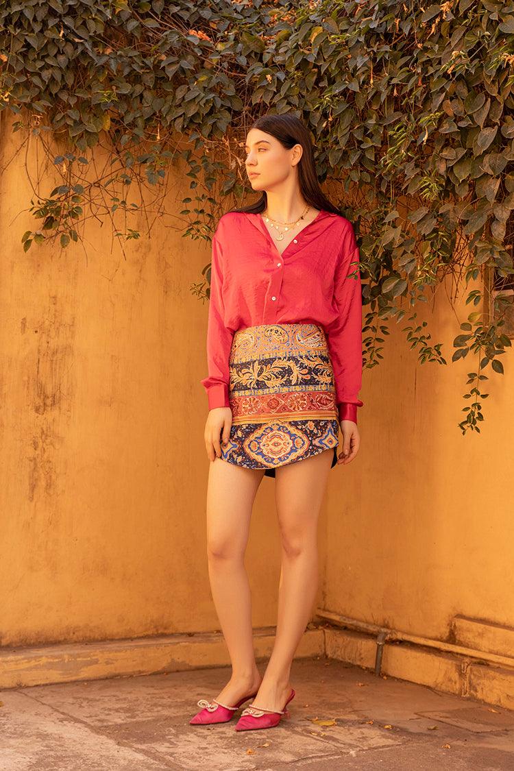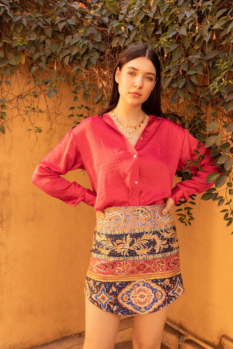 A mandatory pick, our satin shirt sits well with a pair of white palazzos or a multi hued skirt for a playful vibe.